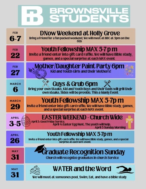 BROWNSVILLE BAPTIST STUDENT MINISTRY UPCOMING EVENTS